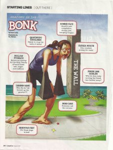 This training session is dedicated to Army Staff Sgt. Kerry W. Frith who was assigned to the 160th Special Operations Aviation Regiment ” Night Stalkers” and lost his life in 2002. In my post about pain management I mention bonkering. I saw this cartoon by Susan Lacks and N.C.Winters in the magazine “Competitor” August 2011 page 34 which really captures some of the feelings of a runner bonkering. It is not a nice place to be. Yesterday I did a 4 mile walk over various terrain with a 35 lb pack and then completed a TRX1 – 5/6 week routine. Will be evaluating whether to move up to the 7/8 week routine next week. Today I did a 4 mile paddle interval workout. For this workout I increased the interval strokes – 3rep/150 strokes /30 stroke rest, 4rep/300 stroke/ 60 stroke rest, and then 3rep/150 stroke/ 30 stroke rest. Covered the 4 miles in 46 minutes which gave me an average speed of 5.2 MPH. Staff Sgt. Frith’s family included three children. Please consider a donation to the Special Operations Warrior Foundation to help provide a college education to his children. http://www.firstgiving.com/fundraiser/billwhale/ufc2012
