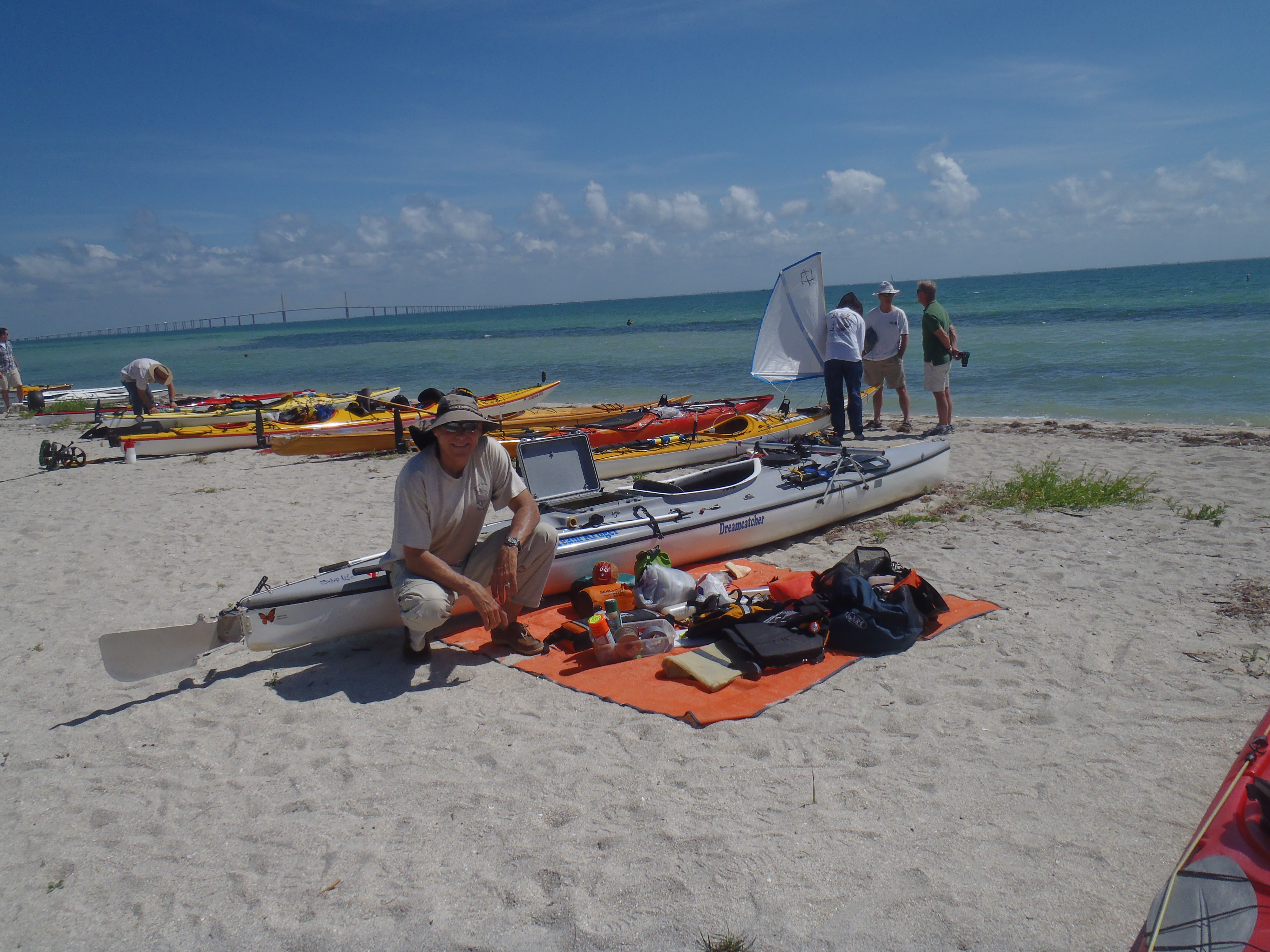 Hello Everyone!! As Bill mentioned in his previous posting, I will be taking over from here. Bill often says, “Yesterday was the last easy day.” However, TODAY was the last easy day for him. 🙂 The kayak and most gear got taken to the race launch site at Ft. Desoto. At this point, if it hasn’t been done, it’s probably not going to get done and all his preparation comes in to play now. A nice big dinner tonight (he chose Sonny’s — helping to validate my “he ain’t right” theory) and a good night’s sleep is in order as we will be up at o’dark thirty in the morning. Thanks for everyone’s support and encouragement during the training leading up to this event and especially during the next 3-4 weeks. It means so much and I will be sure and share some of that support and encouragement with Bill as well — LOL!! Tomorrow’s weather is not too pleasant for the racers… wind right on their noses. Be back tomorrow with pictures from the start. -lisa